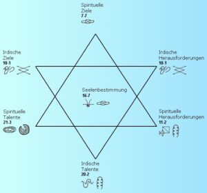 Im Kernpunkt des Seelensterns liegt die Seelenbestimmung / Quintessenz, wobei alle Menschen frei sind, ihre Richtung zu wählen.
